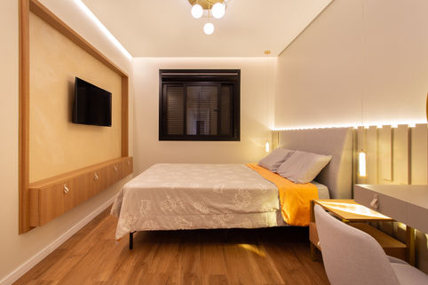 Composto por madeira natural, iluminação cenográfica e uma atmosfera acolhedora. Os interiores da Casa J_P foram pensados para receber, conviver e valorizar o estar em casa, com conforto e funcionalidade!