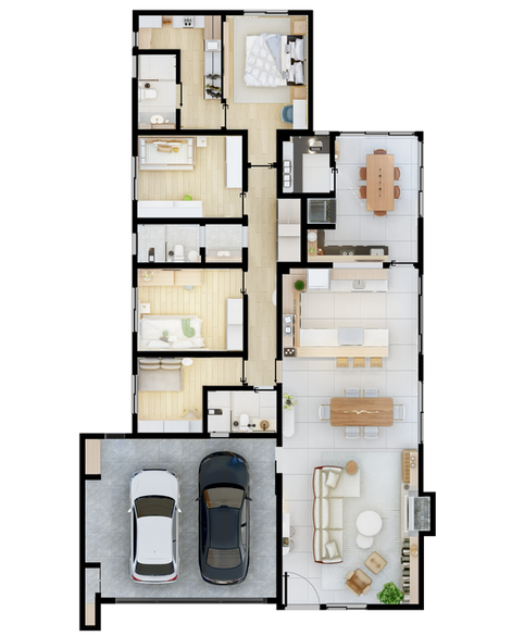 Projeto arquitetônico de residência térrea, com 192 metros quadrados de área útil!